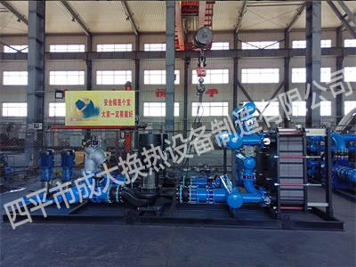 我公司換熱機組是集成了換熱器,循環泵,補水泵,溫度計,壓力表,各種傳感器,管路和閥門及工控于一體的成套區域供熱設備,并加裝了補水系統,定壓系統,水處理系統,變頻流量控制系統,熱量計及網絡控制通訊系統。是把大量用戶現場的水泵,閥門,儀表的選擇以及管道法蘭焊接的工作以及電氣控制的現場安裝調試工作,用我公司來完成,我公司生產的各規格機組,容量從 0.2MW 到 15MW ,采用標準模塊代設計,自由組合,以滿足用戶不同工況的要求,為用戶提供更合理更適用的機組,在滿足用戶使用的要求前提下,盡可能為用戶節省設備的投資。