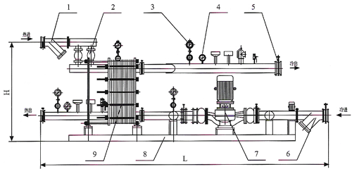 8.底座 9.板式換熱器 10.補水泵(如蒸汽供暖的機組,根據用戶要求可加裝蔬水器等)