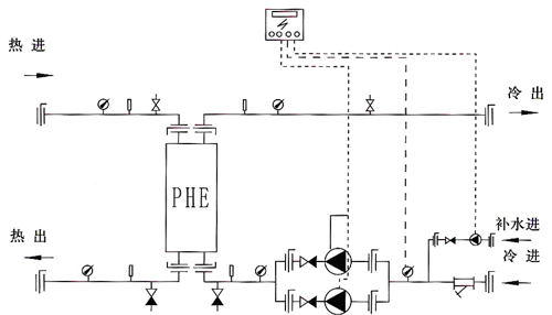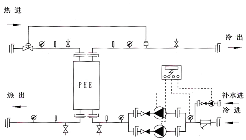 1.Y型過濾器 2.電動調節閥 3.壓力表 4.溫度表 5.蝶閥 6.除污器 7.循環泵